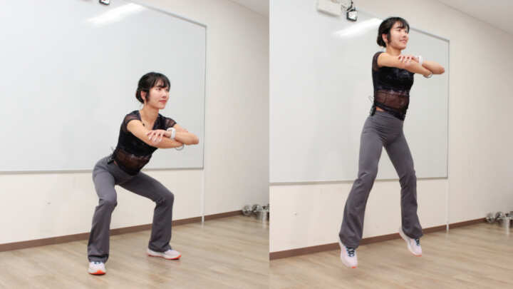 ワイドスクワットしながらジャンプしたら…脂肪を燃やす効果大!代謝アップを狙える筋トレ(週1~2回)