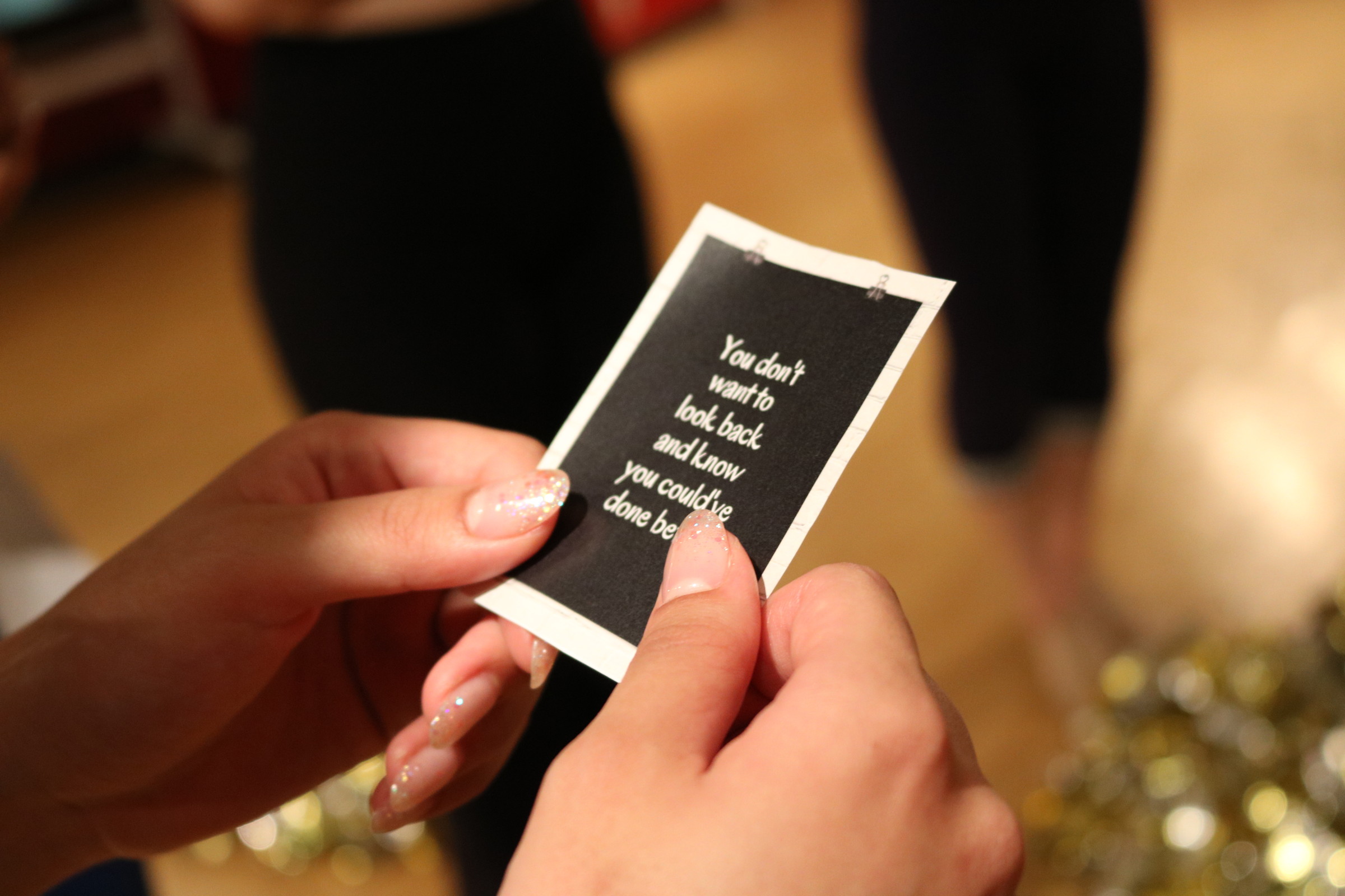 特徴的だったのが、レッスンの終盤で渡されるワンフレーズが書かれたカードと、メンバースピーチ「10item intro & motivational speech」の時間です。