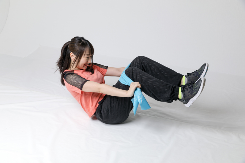 ▲NANAバンドを使うことで、より負荷の強い腹筋も可能に