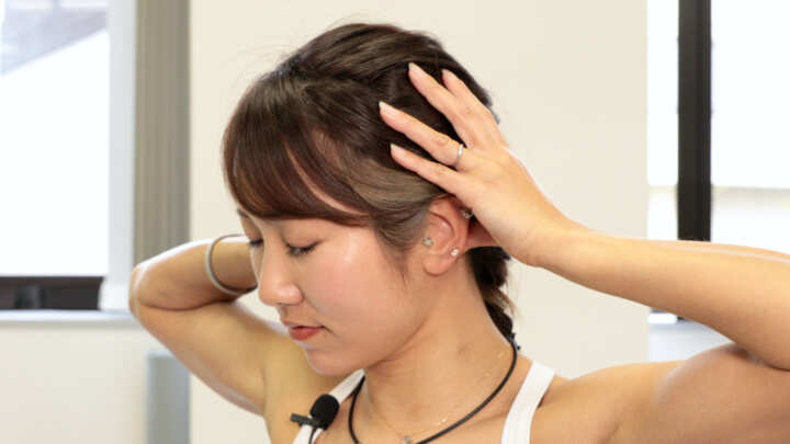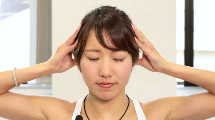 - 三本の指で側頭部(耳の周辺)を軽く押し、前後に10秒動かす