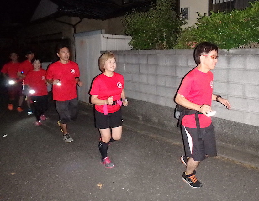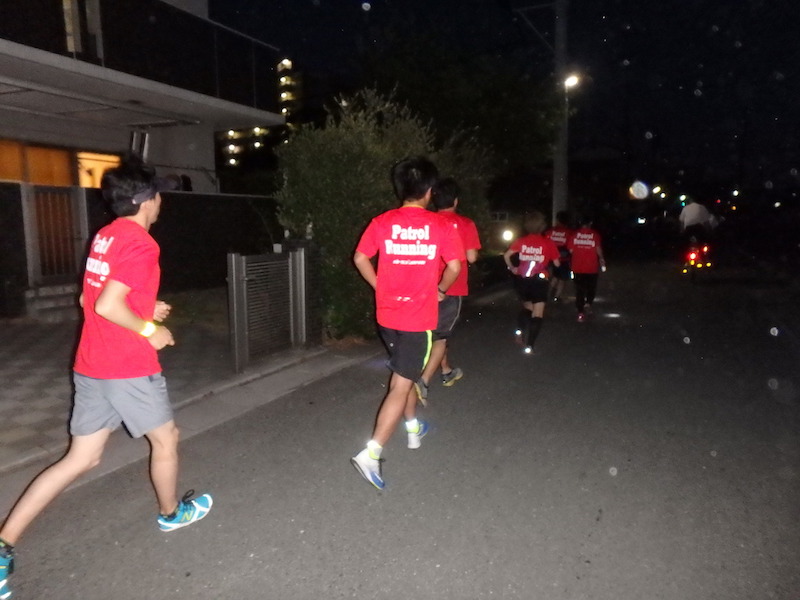通行の妨げにならないよう1列で、手にはライトを持って走ります。途中、誰かとすれ違えば「こんばんは」と挨拶。ルートは事前に決められており、私が参加したグループは学校や住宅街を中心に回りました。危険そうな場所、見回りした方が良い場所をあらかじめピックアップし、それらを繋いでコースを作っているようです。