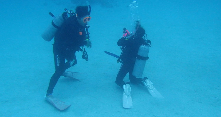 手信号でお話したり、無重力感覚を体験したり、海中を楽しむ余裕もできて楽しいレッスン♪