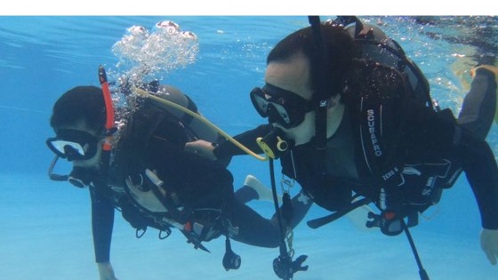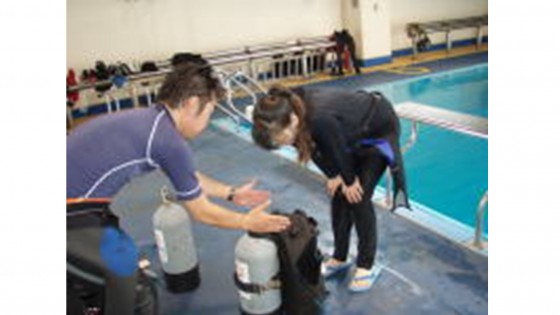ダイビング専用プールで1m〜5mの水深を体験してみましょう。