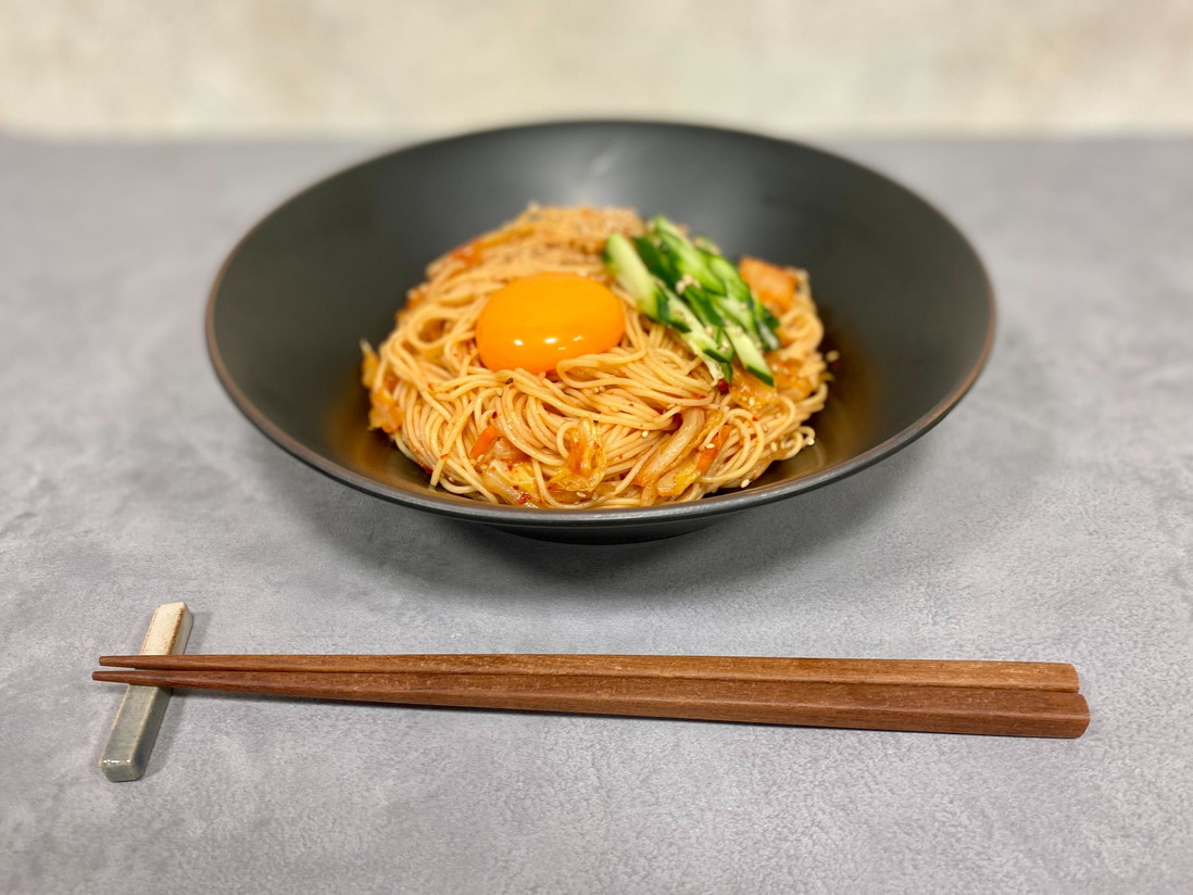 キムチの味も混ざり、まったく違和感のないビビン麺に仕上がっています。言われなければ豆麺だと気づかないでしょう。