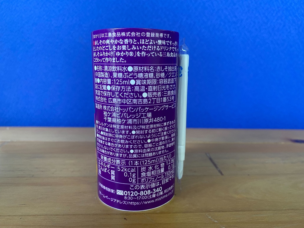 ふりかけで有名な、三島食品の「ゆかり」ドリンクです。