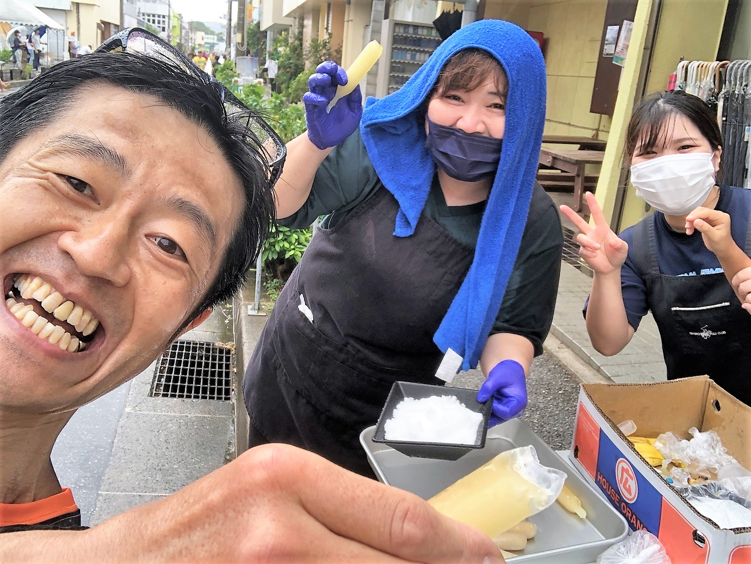 沿道の町民の方から、シークワーサーの果汁を凍らせた氷菓をご馳走になったり、いきなりの地元馬さんたちの登場にビックリしたりと、いつの間にか雨が止んだのも忘れていました。