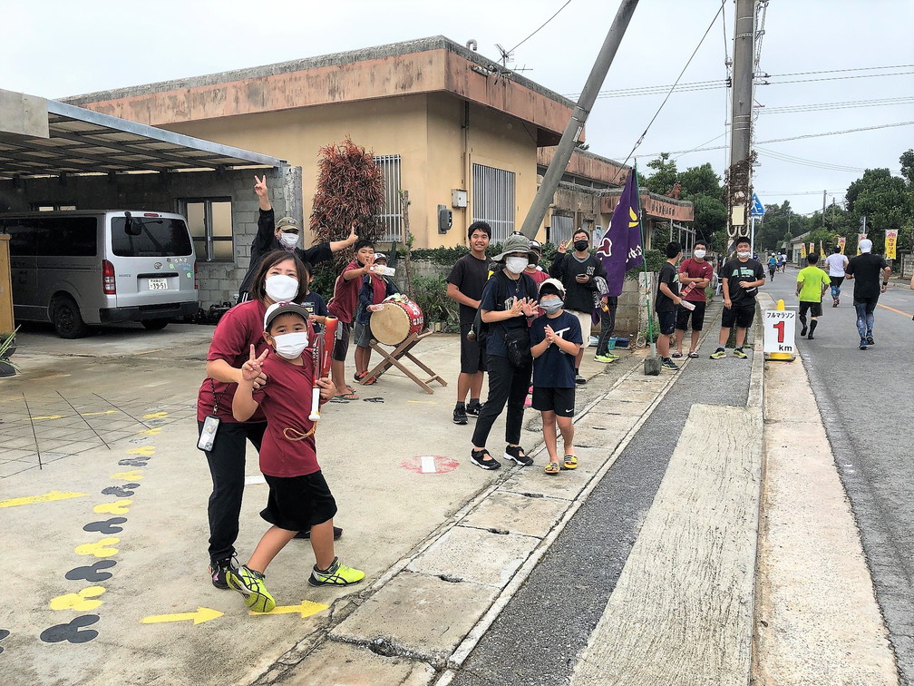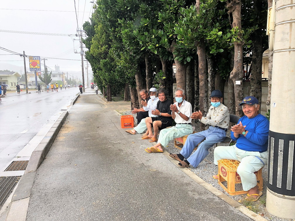 10㎞地点の折り返しまででは、久米島の島民の皆さんが太鼓演奏や拍手、掛け声でエールを送ってくださいました。