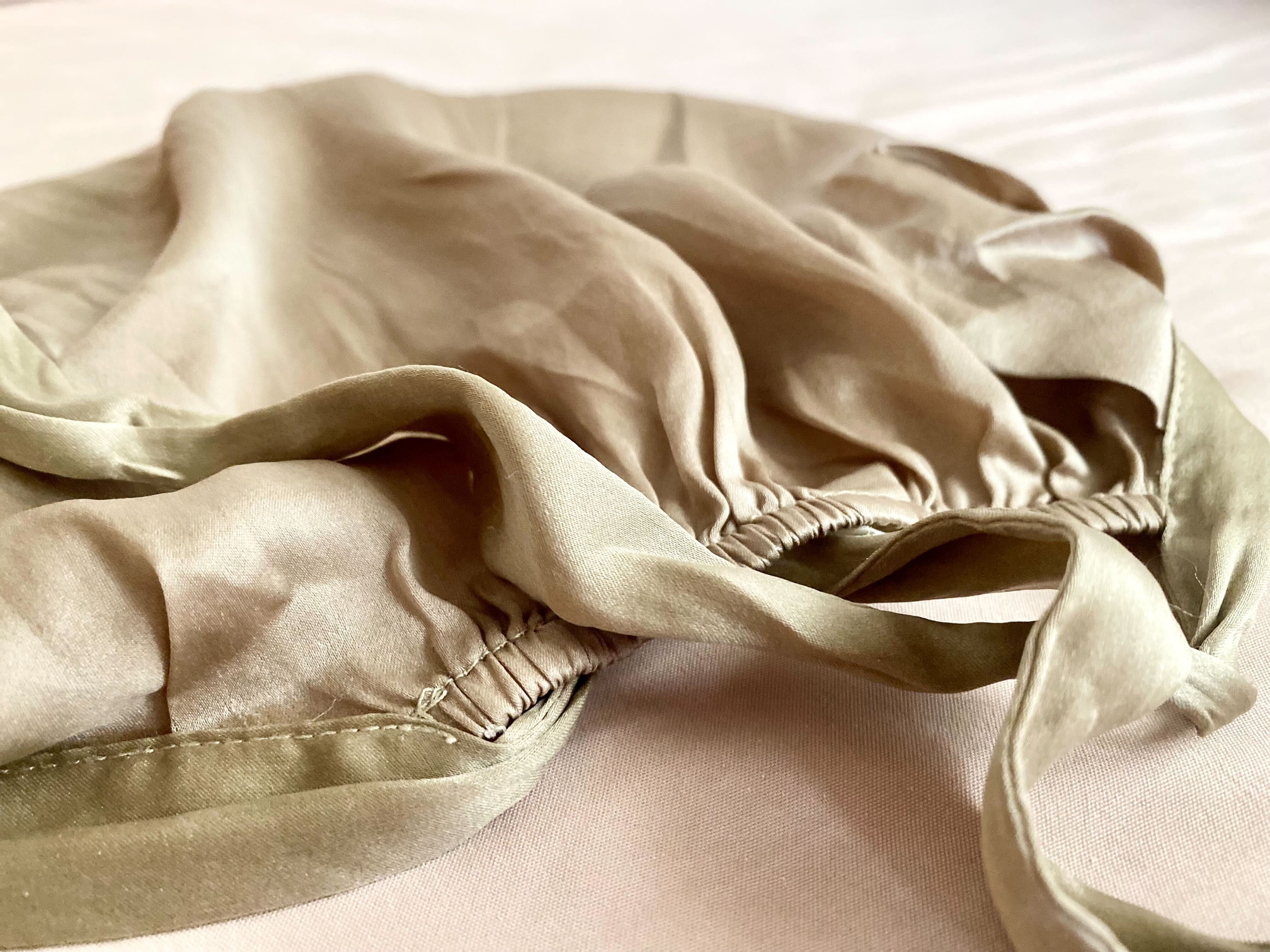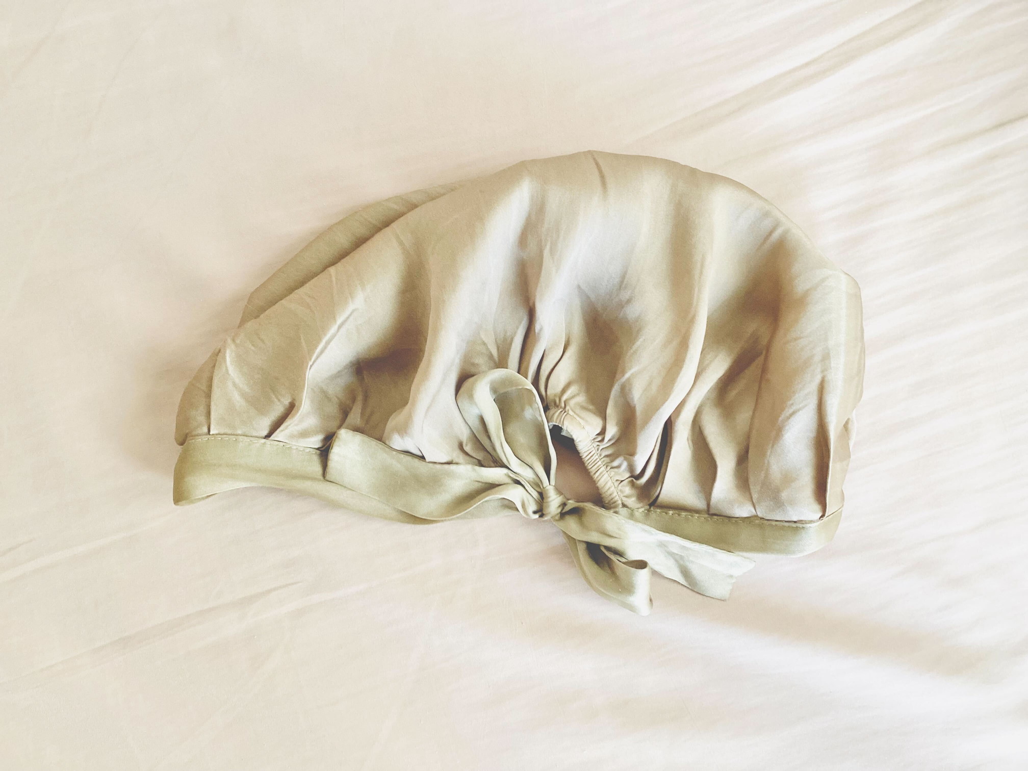 毎晩このキャップをかぶって寝るのですが、面倒な反面、髪をすべてキャップにまとめるので、髪が頬や首にまとわりつかず、枕も汚れません。