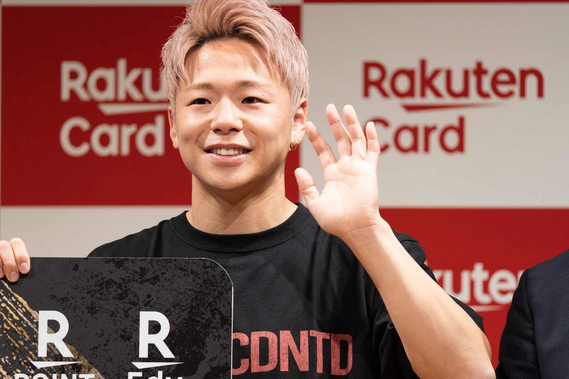 楽天カードの券面にデザインされた人物としては、ミュージシャンのYOSHIKI、サッカー選手のアンドレス・イニエスタ選手(ヴィッセル神戸)に次いで3人目。「デザイン案はもらっていたが、実際に見るとかっこいいし、僕のラッキーカラーのゴールドと赤が入っていて、すごく光栄です」と喜んだ。