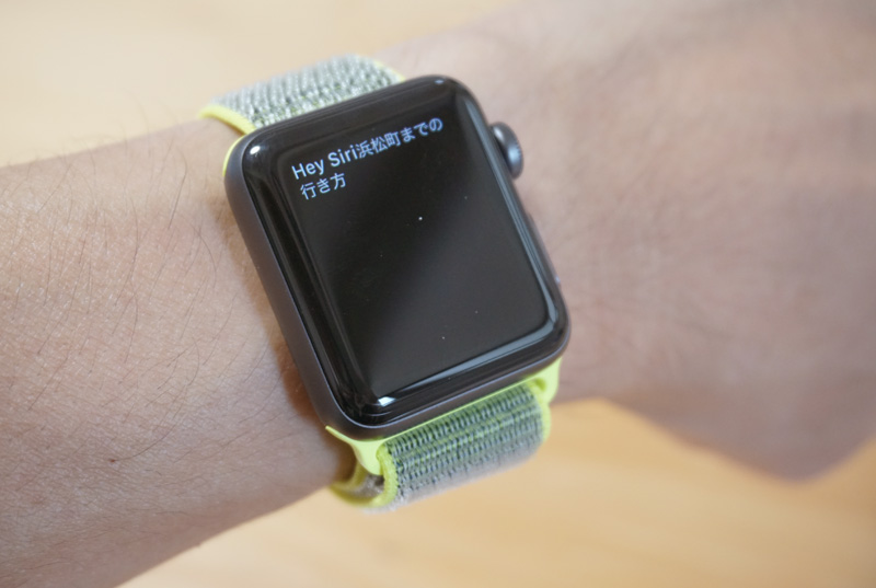 ▲スリープ状態からAIアシスタントの「Siri」を呼び出せる、「Hey Siri」にも対応しています。電車の乗り換え情報などもApple Watchだけで調べることができて便利です