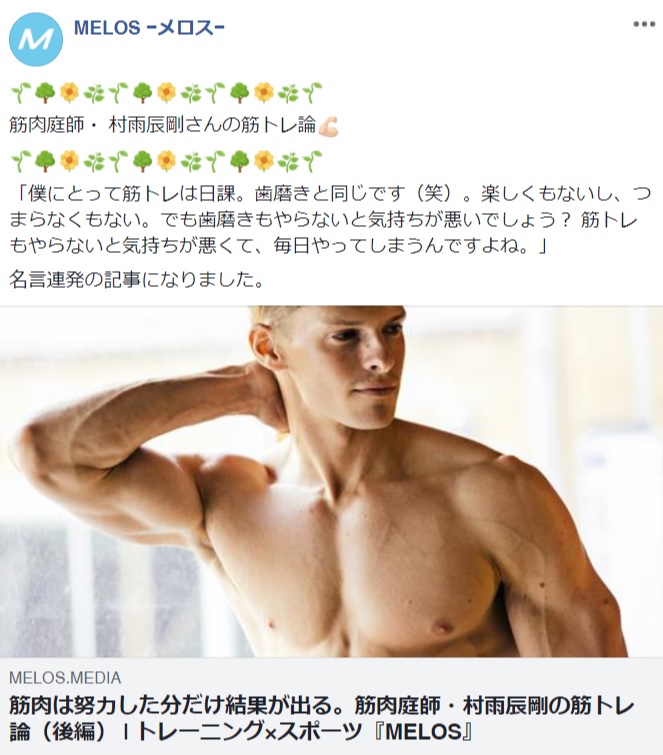FacebookやTwitterとは少し異なる、MELOSのInstagram。編集部のゆるふわな日常やスポーツ、美容、健康に関する写真などを投稿しています。言うなれば妹分のような立ち位置でしょうか。