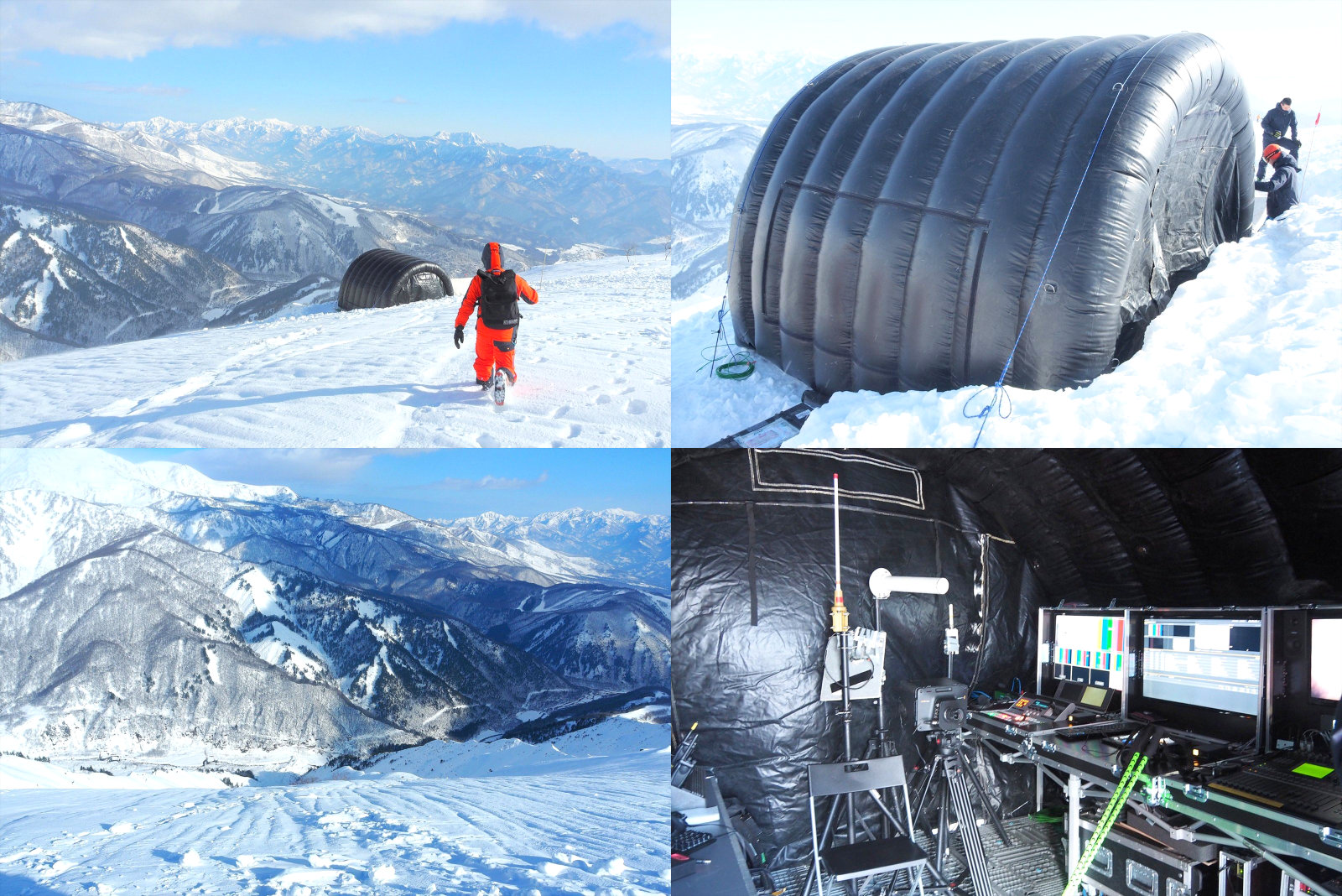KDDIでは、麓から電波を飛ばして競技エリア周辺の通信環境を整えるとともに、山頂には中継のためのテントを設置。選手が滑る映像を、このテントからYouTubeにアップストリーミングする計画とのことでした。