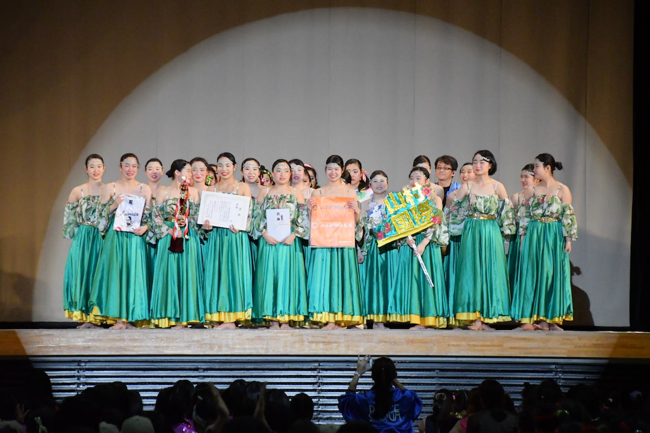 ▲表彰式で優勝した山村国際高校ダンス部の1年生たちは感無量の表情