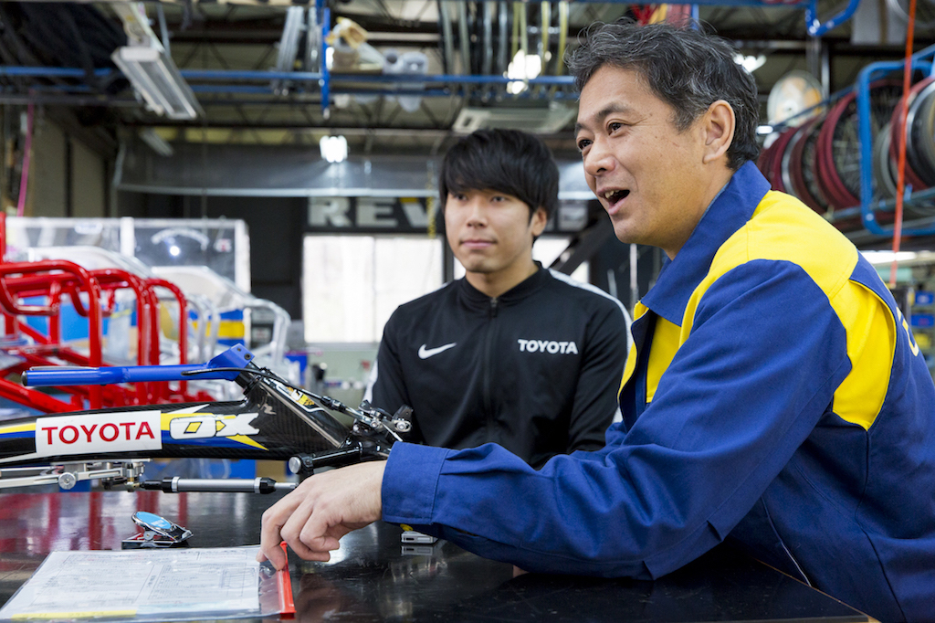 小澤:花岡伸和さん(※3)という鈴木選手の師匠にあたる方が、当時弊社に在籍していて、陸上競技の活動をしながら広報の仕事をしていたんです。その活動の中で鈴木選手と出会って、花岡さんがいろいろと彼を指導していたんですね。その時から、ちょっとした車いすの調整を私がやり始めました。それが出会いのきっかけで、最初から私がオーダーメイドのレーサーを作っていた訳ではないんです。