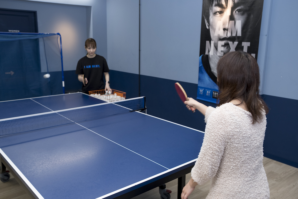 その後はちょっとレベルアップし、ラリー形式で1球ずつ交互に対角・正面と打ち分ける練習。こちらは少し難易度が高く、時々狙いを外してしまったものの、ラリーはかなり長く続きました。さらに練習を続ければ、コースの打ち分けに加えて、力加減をコントロールして長め・短めの球も打てるようになるはず。
