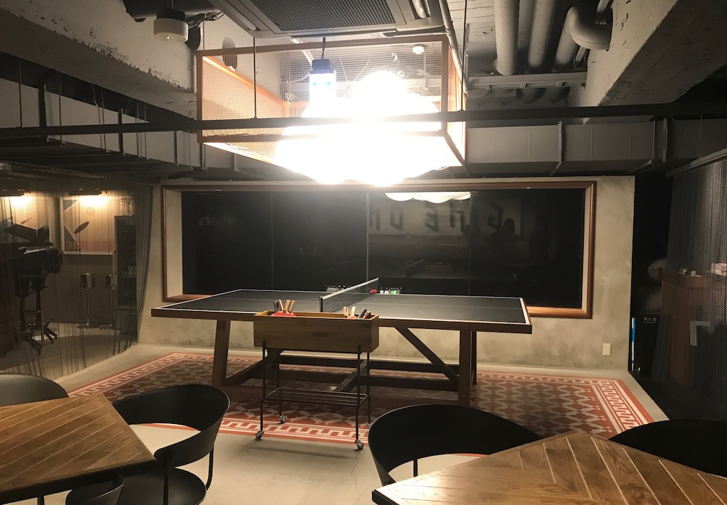 店内にはドーンと卓球台が! そう、レストラン内でも卓球ができちゃうんです。お酒や食事をしながらカジュアルに卓球ができるということで、老若男女問わず人気なのだそう。