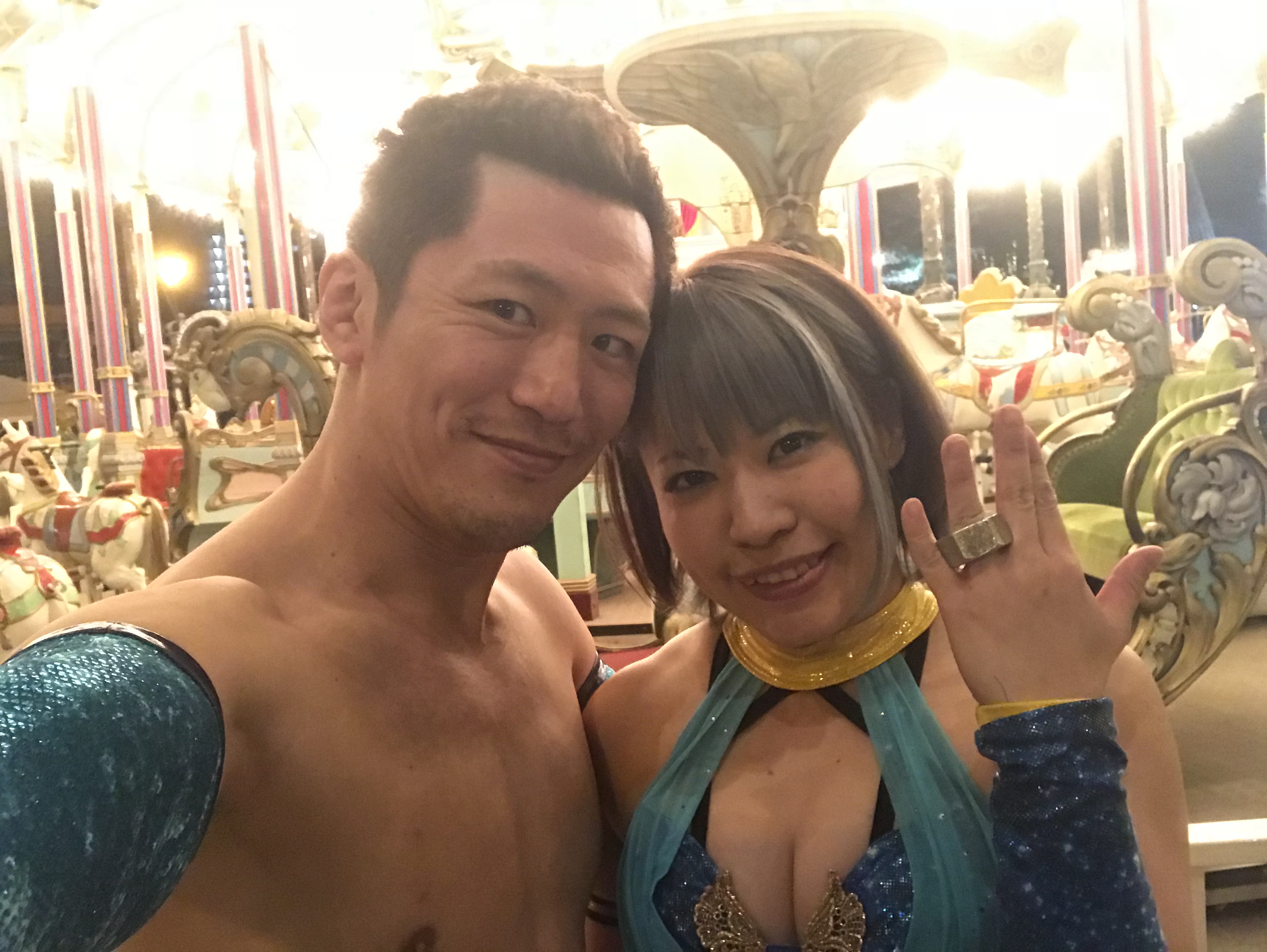 5月25日に、プロレスラーの大石真翔選手と結婚することを発表しました。大石さんが所属するプロレス団体「DDTプロレスリング」の大会開催中に、大石さんからプロポーズを受けるというサプライズで、大石さんはその場にあったナットを指輪代わりにして大畠選手に贈りました。