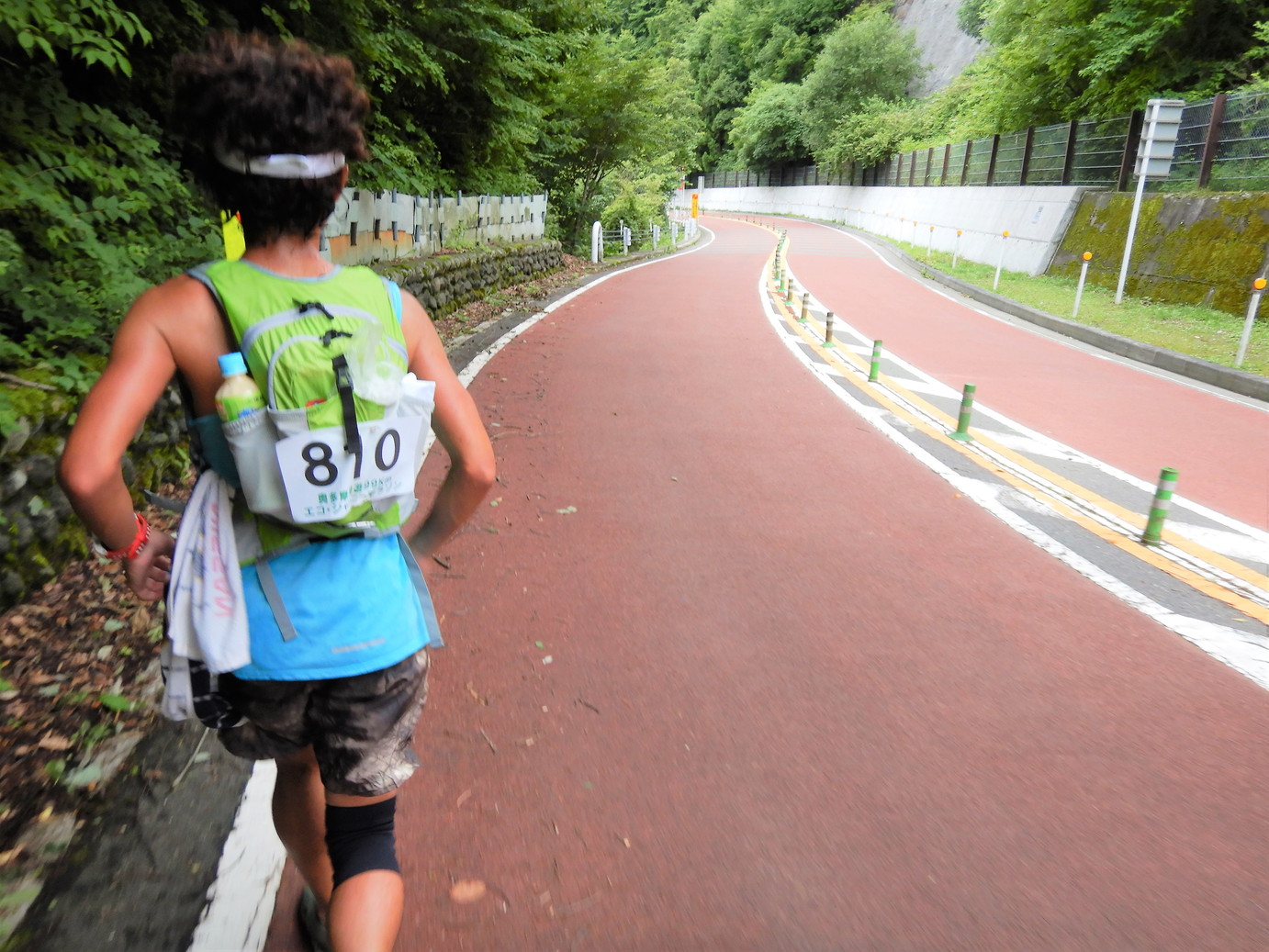 奥多摩湖に沿って約8km走ると、本大会の最終難関とも呼べる「奥多摩周遊道路」に入ります。約13kmを一気に登った後、そのまま檜原村の村落まで約20km一気に下るという過酷さ。平地はほとんどありません。おそらく参加者の中には、すでに足の疲労や痛みで、登りも下りも走れないという方がいたことでしょう。