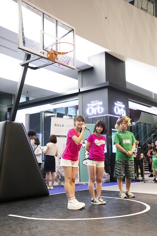 今回のルールは12秒間、ボールを投げ続け、何本ゴールが決まるかというもの。いたってシンプル。ちなみにイベントで行なわれた子どもたちのフリースローは、5本中3〜4本という好成績。ふたりはどれだけ入れられるのでしょう。