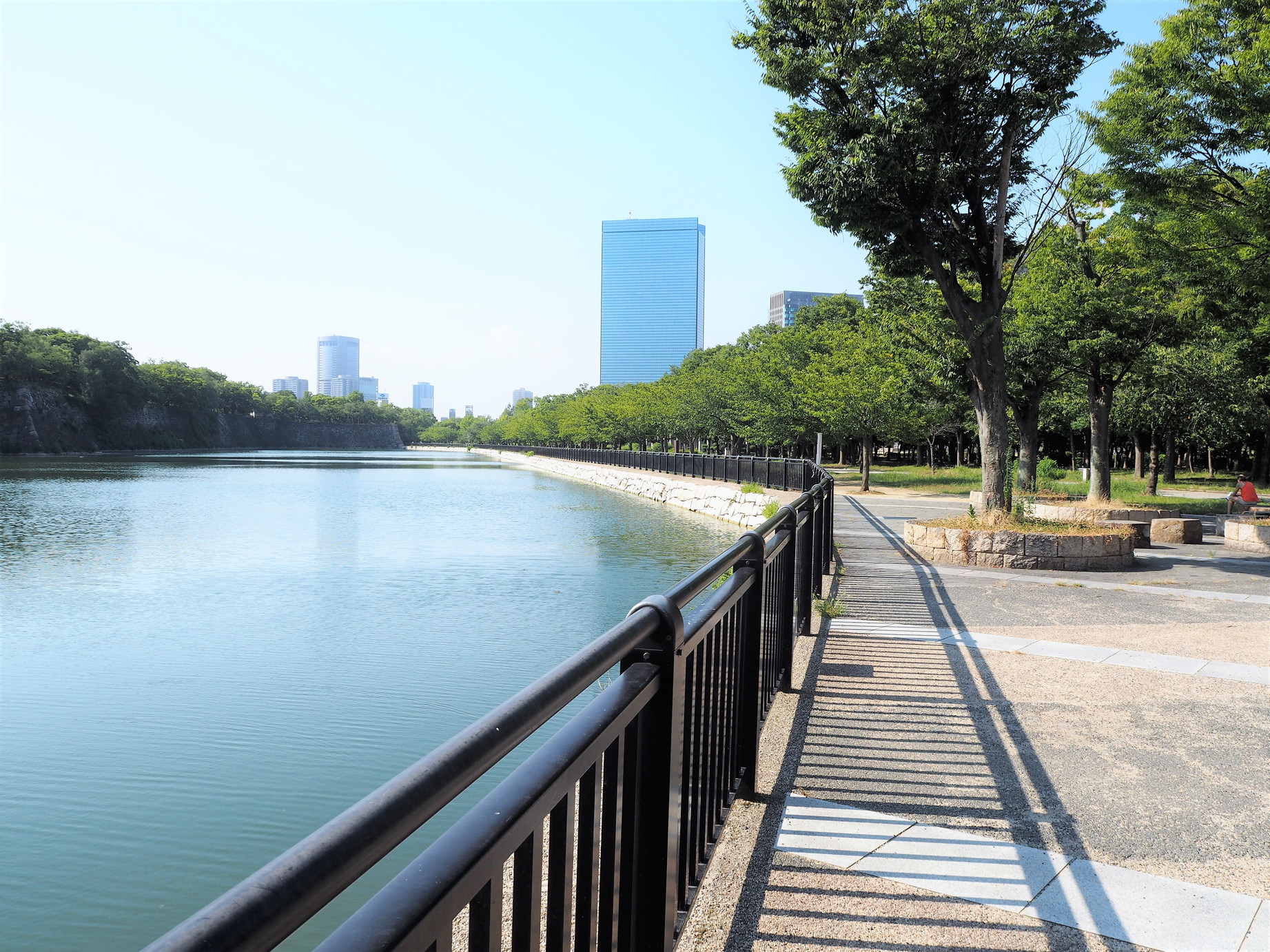 走って疲れたら、大阪城のお堀を見ながらちょっと休憩。時間の流れが緩やかに感じられました。公園内はとても静かで、ランナー以外に観光客や散歩に訪れる地元の方々もたくさん見られます。