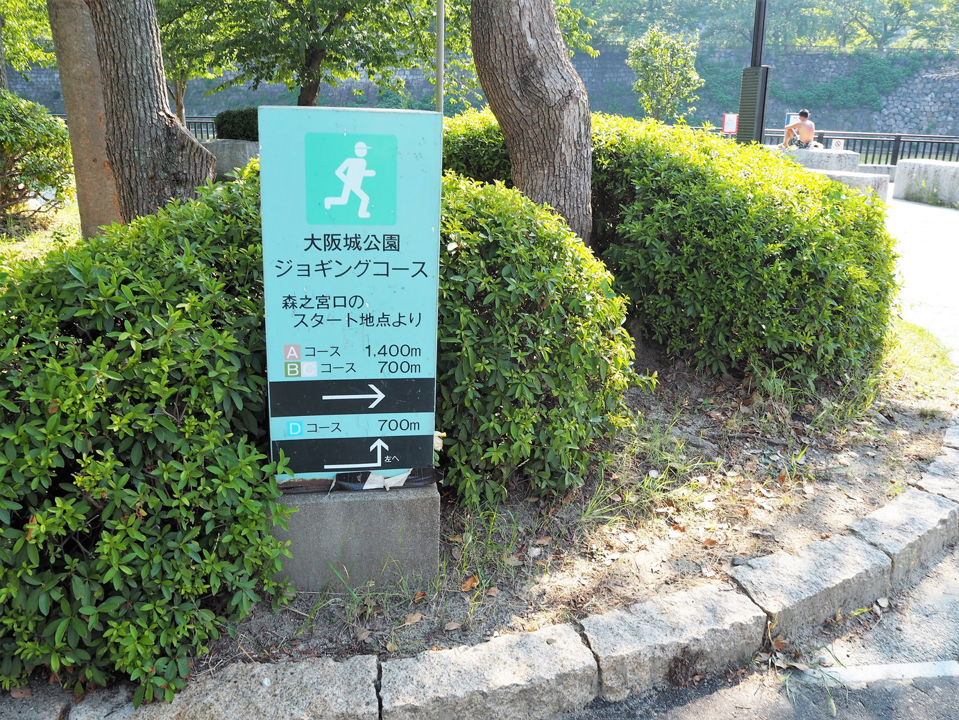 大阪城公園にはいくつかランニングコースが設けられており、コースを記す看板が立てられています。もっとも長いコースは5km以上。その日のコンディションや気分に応じて、好きなコースを選んでください。もちろんこれに限らず、好きに公園内を走って回るのもいいでしょう。