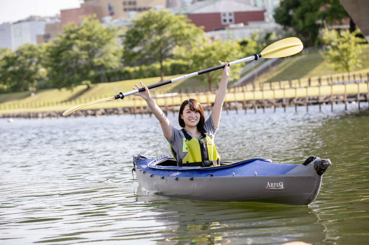 紺野:私が乗ってた競技カヌーとは、パドルの動かし方も座り方も違って、実は慣れるまで大変でした。結局、パドルは諦めたので靴とかびちゃびちゃです(笑)。ここは夜のツアーもあるそうなので、今度来てみたいと思いました。2人も楽しんでたから、初めてでも怖がったり難しく思わないで、カヌーを身近に感じてほしいです。あと、2人には、引っ張ってあげたんだから、ちゃんとお礼言ってほしい!