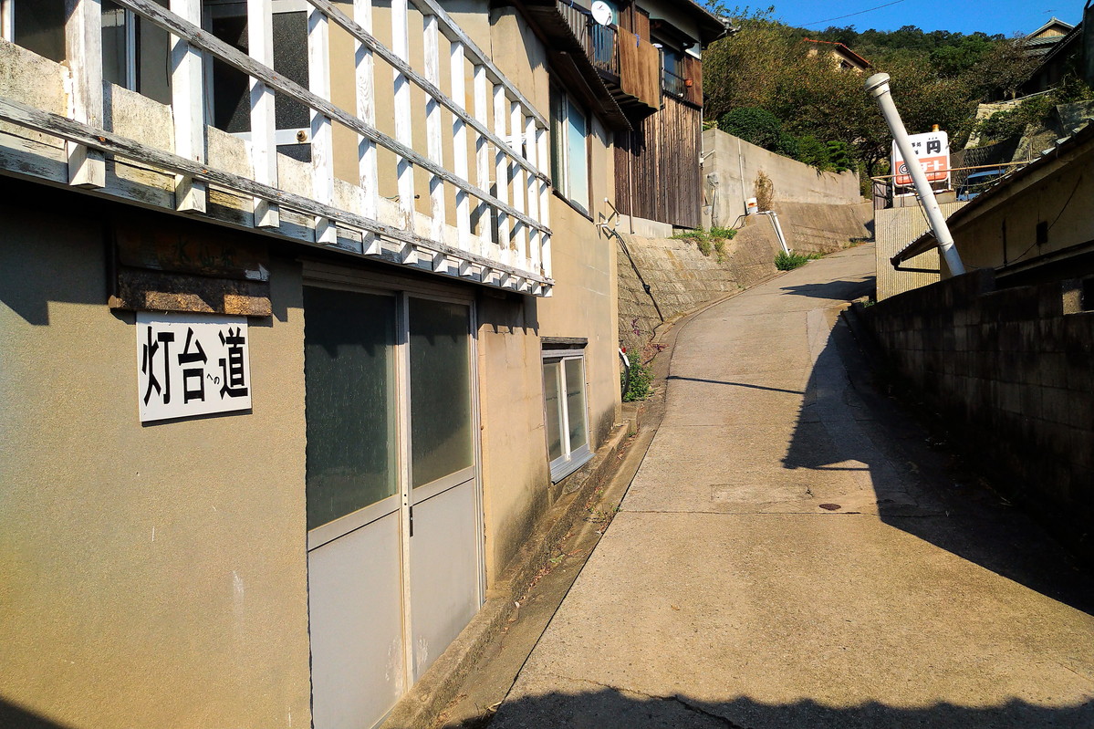 集落を抜けて灯台へ向かいますが、いきなりビックリするような坂道です。走り慣れていない方は、早くも歩いてしまうかもしれません。先は長いので、無理せず進みましょう。