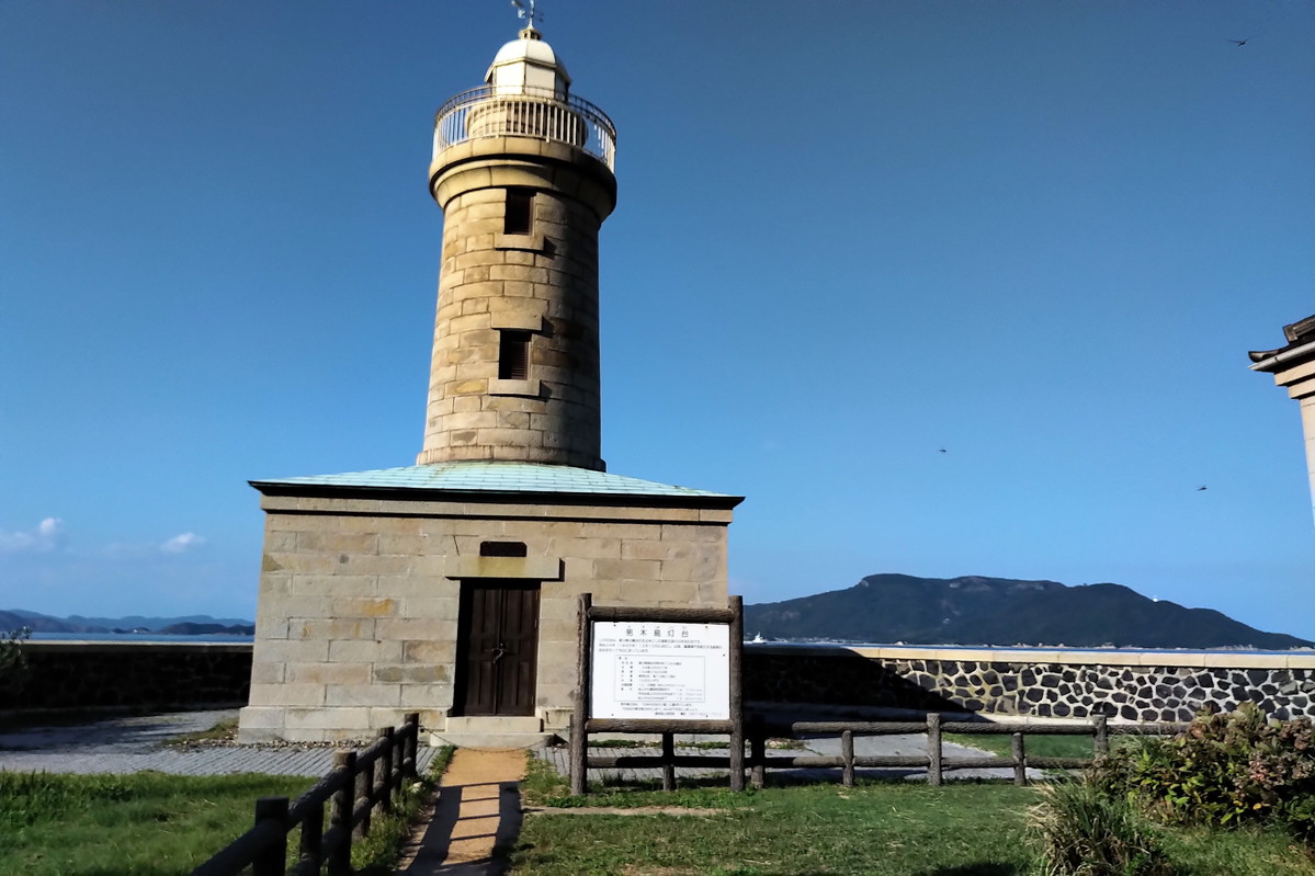 港から約2kmで到着するのが、こちらの男木島灯台。歴史を感じさせる佇まいです。後ろには海が広がり、近くにはバーベキューやキャンプファイヤーのできる設備もありました。