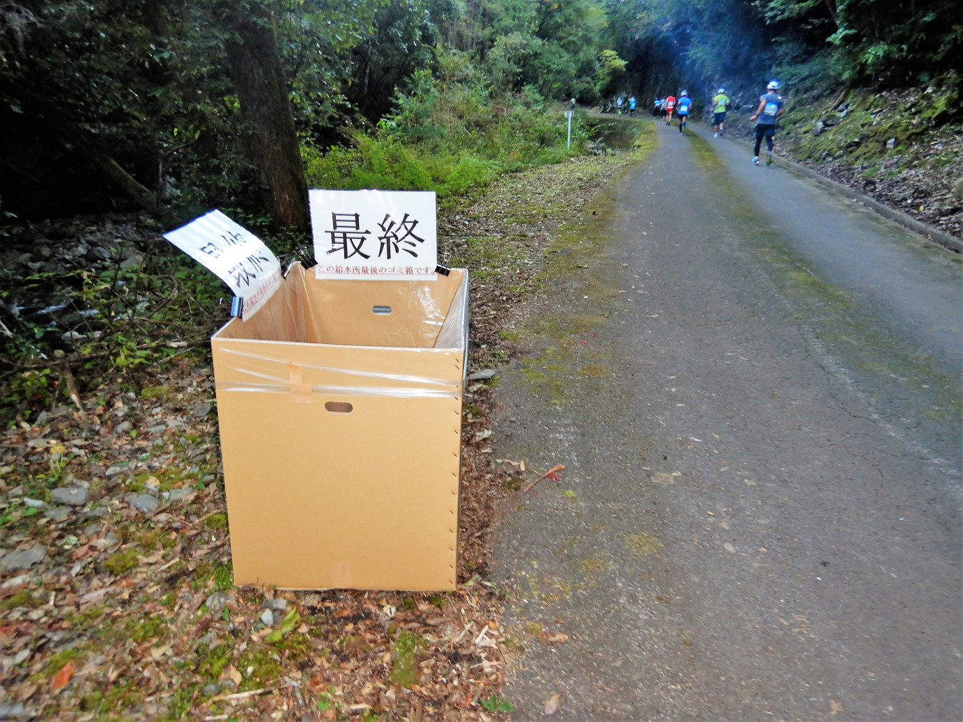 斬新だと感じたのが、給水所ごとに置かれた「最終」と書かれているゴミ箱。給水所を過ぎてから2~3個のゴミ箱が設けられ、最後の1つには必ず「最終」と書かれているのです。