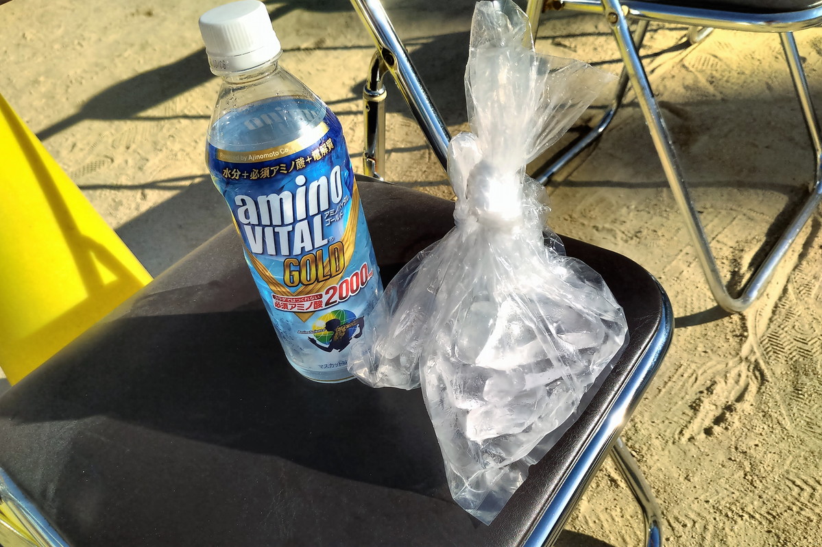 ゴールしたらさようなら……ではなく、休憩スペースが設けられています。そして手渡されるのが、氷の入ったビニール袋。走って疲れた、あるいは傷んだ身体をアイシングするためのものです。これは、なかなか行き届いたおもてなしではないでしょうか。