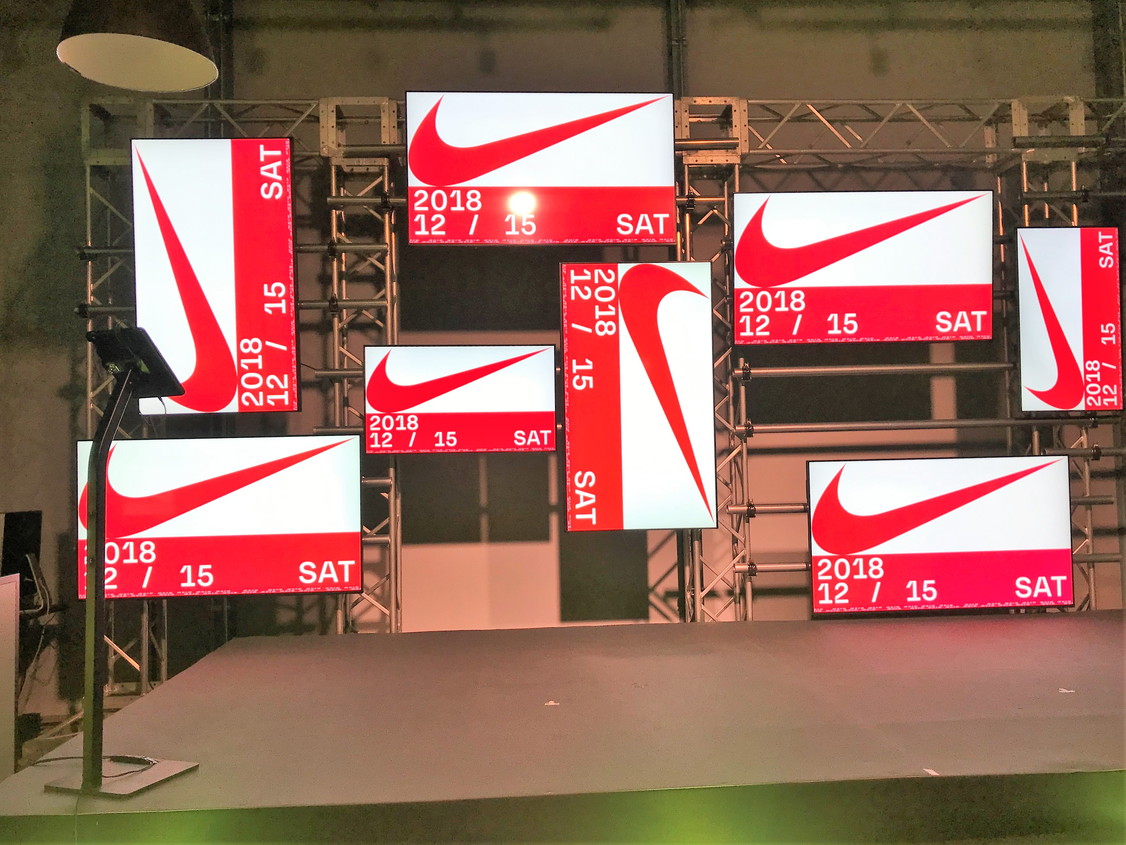 イベント会場内に入ると、他スタジオから集結してきた参加者たちが勢ぞろい。特設ステージ上で写真撮影をしたり、NIKEロゴのボディシールを貼ったりと、モチベーションはMAXの様子です。