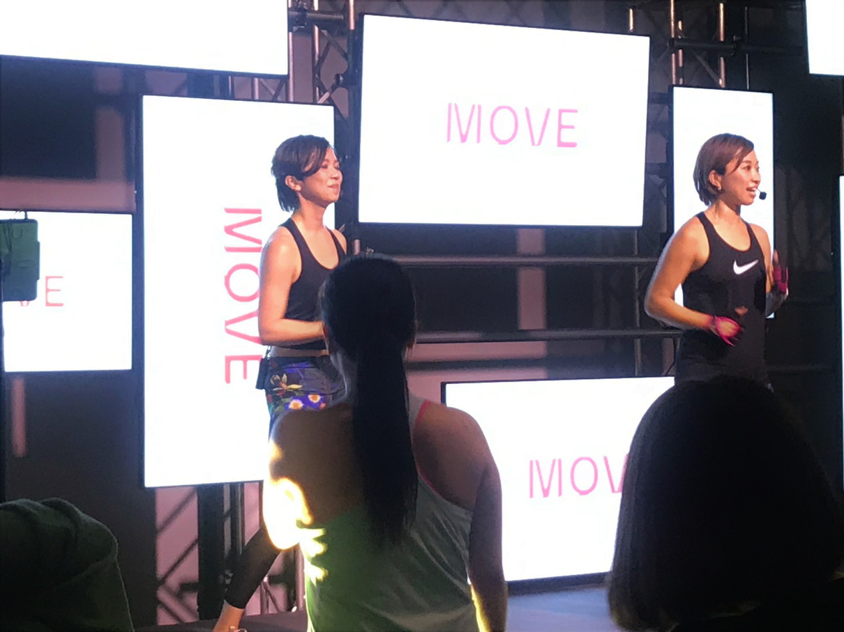 ボクシングのワークアウトもあっという間に終了し、イベントはフィナーレへ。NIKE RUNコーチの雨宮みずきさんが登壇すると、会場内からは「可愛い~!」と声も上がりました。
