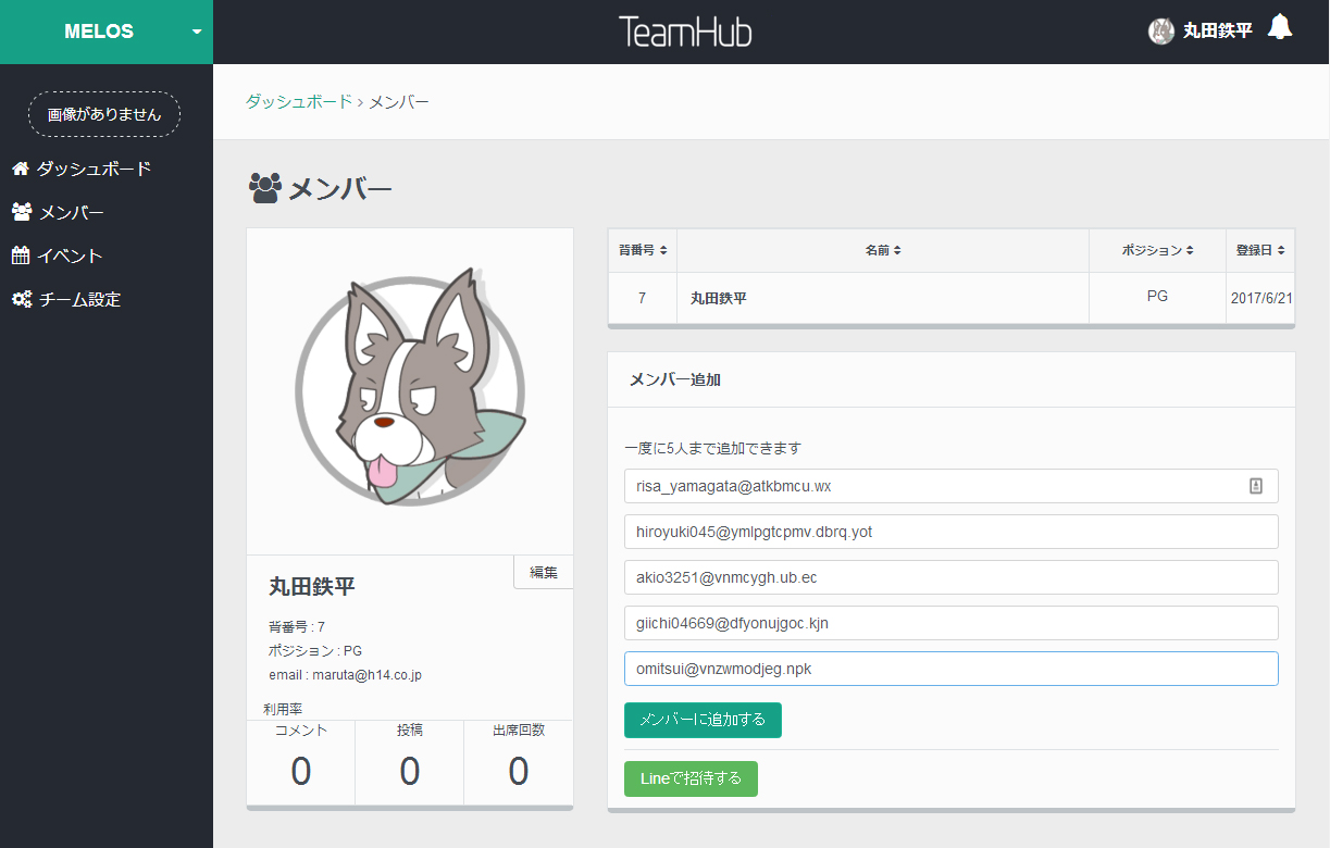 野球やサッカー以外のスポーツでも万能に使える、チーム管理サービスが「TeamHub」です。汎用に作られているので“選手の右打ち/左打ちを登録する”といった特化された昨日はありませんが、メンバーをLINEで招待できるなど、細かいところで便利な作りこみがあるのが嬉しいところです。スマホアプリが用意されているのも、魅力の一つではないでしょうか。