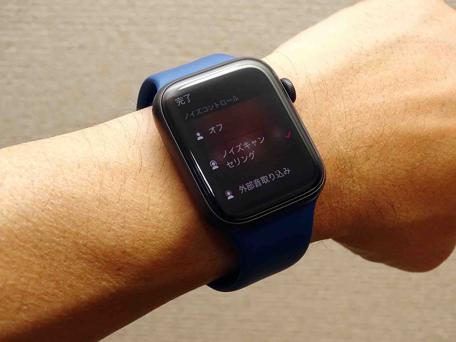 リモコンは濡れていたり、手袋を着けている手で操作しても大丈夫。ペアリングしているiPhoneで再生する音量のアップダウン操作がAirPods Proから行えないのが唯一残念なところですが、ハンズフリーでiPhoneの音声アシスタントが起動できる「Hey Siri」が使えるので、屋外で使うときにはこれを併用すると良いでしょう。Apple Watchを一緒に使っているという方は、音量をApple Watchの画面で見ながら設定できるので、合わせて使うと便利です。