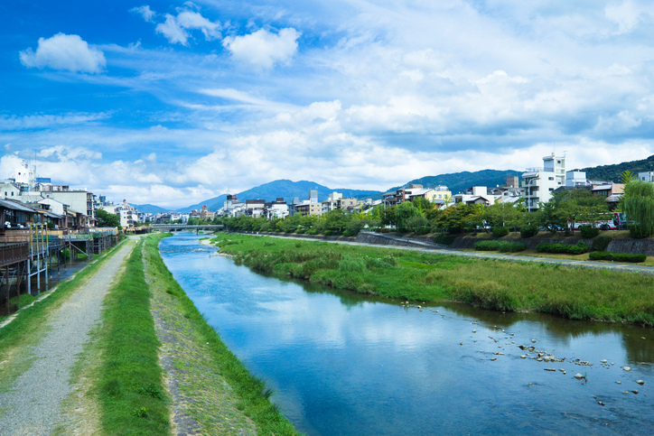 京都祇園にあるmusubi cafe 祇園鴨川。すぐ目の前には美しい鴨川が流れています。周辺には、京都のランナーに人気のある河川敷ランニングコースが。京都マラソンのコースにもなっており、きれいに整備された走りやすいコースです。