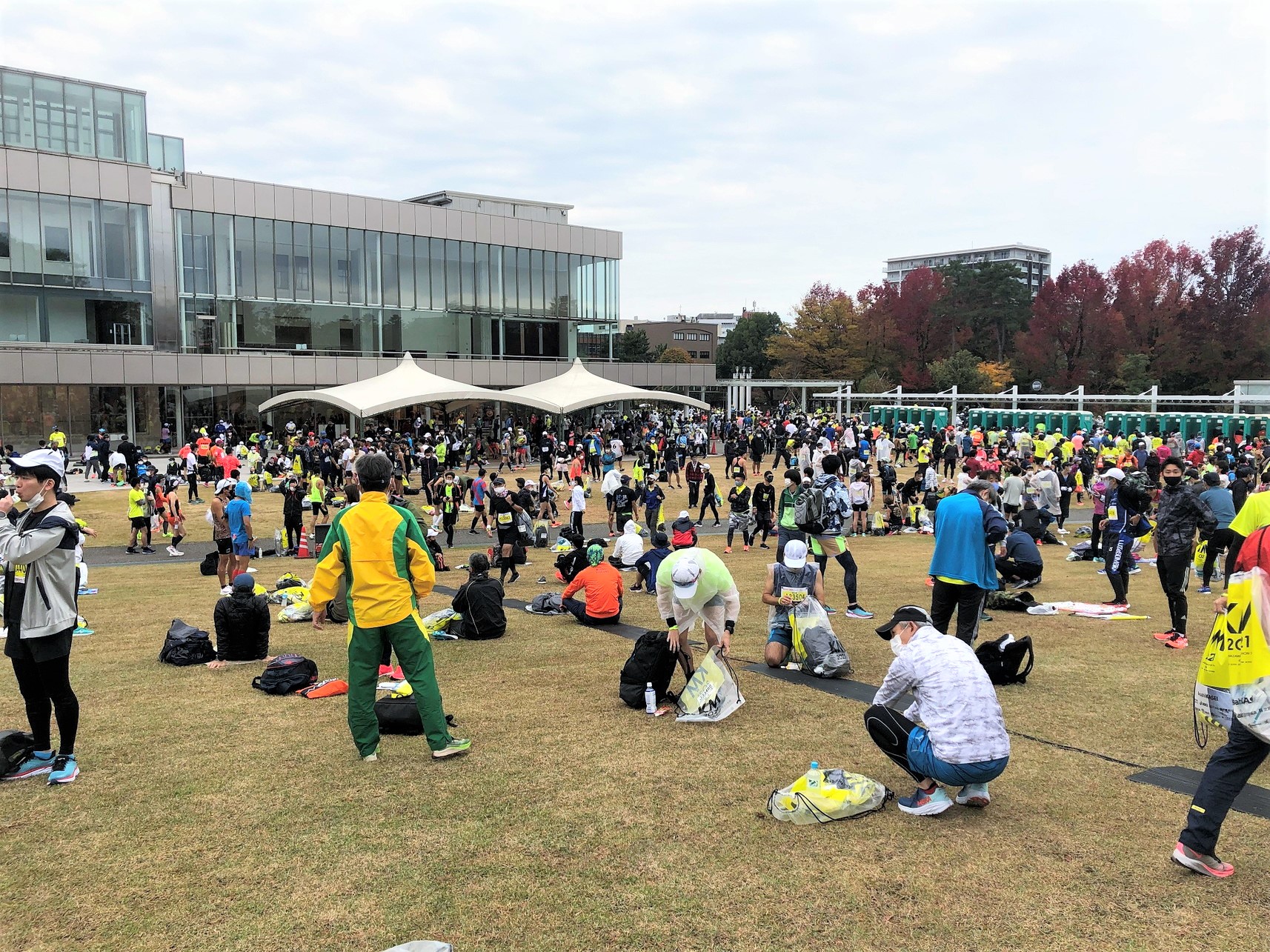 入場時はもちろんのこと、手荷物預けエリアやトイレなどいたる所で手指の消毒や検温が行われる徹底ぶり。もちろん、ランナーも全員がマスクを着用し、大騒ぎをすることもなく静かに進行を見守ります。