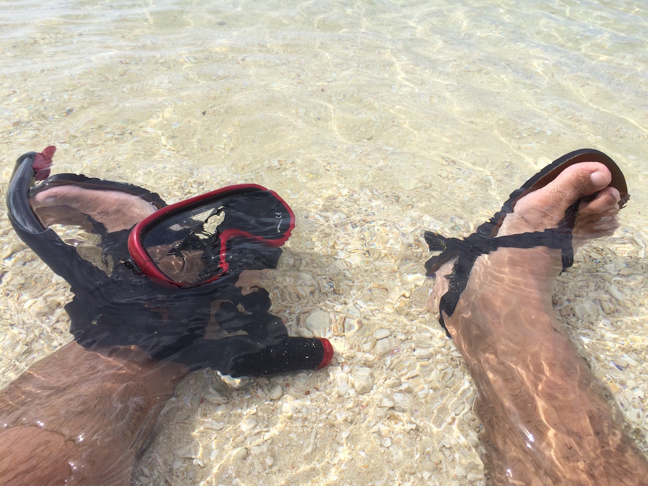 宿に戻って泳げる用意を持っていくのも良いですが、余裕があればバックパックで荷物を背負ってしまうのもオススメ。私はあらかじめ海に入っても問題ないインナー&短パンを履き、バックパックにタオルとシュノーケルを入れて走りました。さらにルナサンダルを履いていたので、着替えなんか一切不要。走って海へとたどり着いたら、そのままドボン!と直行です。これも、南国の離島だからこそできる楽しみ方ではないでしょうか。