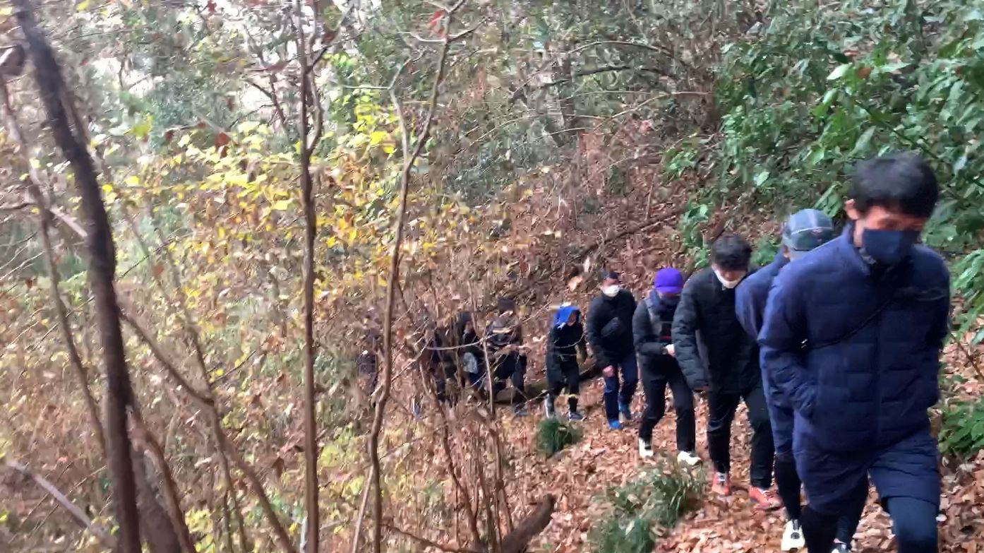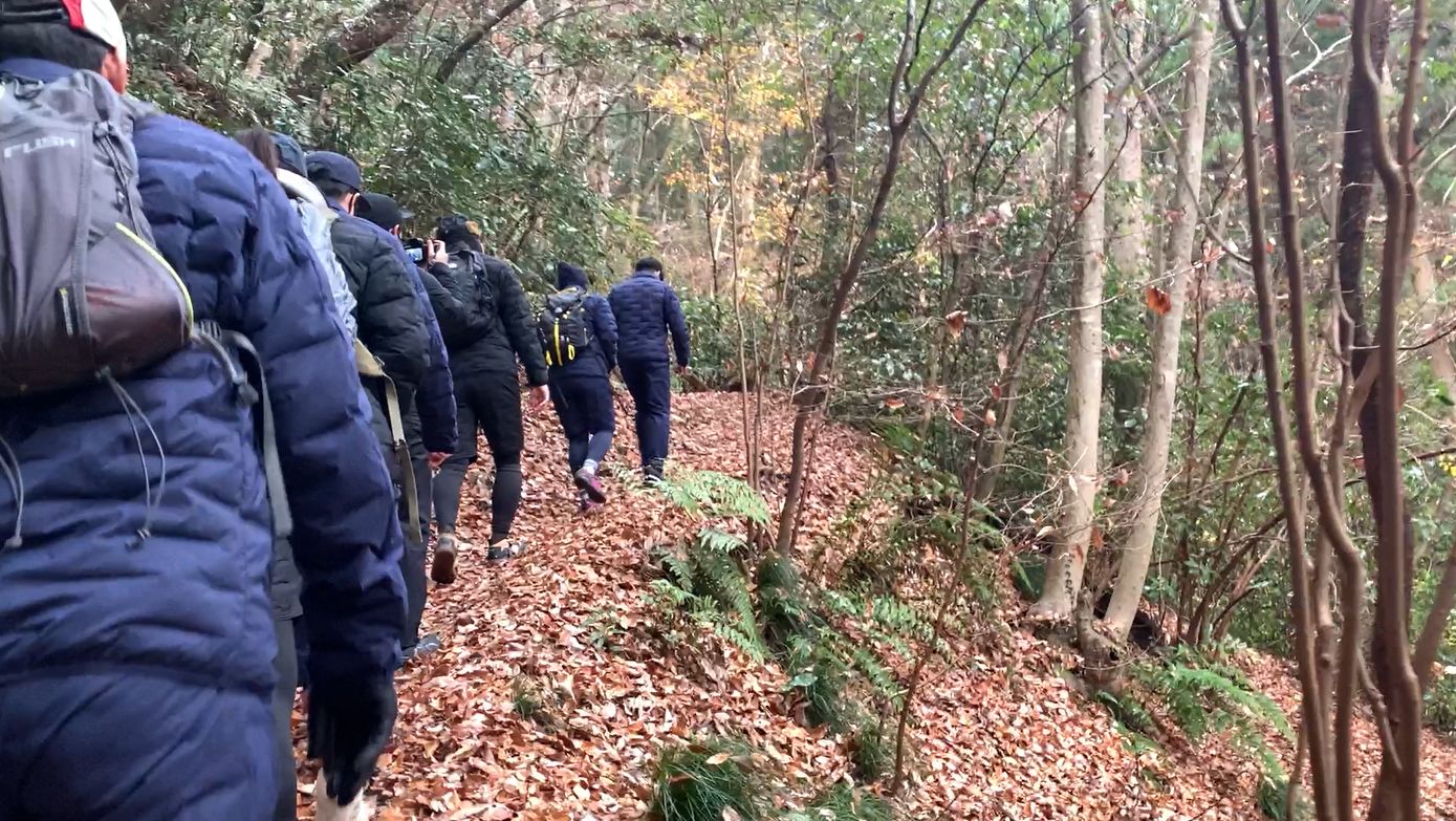 場所は東京都八王子市高尾町。内容は、高尾山近くの裏山で1時間半のハイキングを行い、新作ウエアの着心地を体験するというもの。