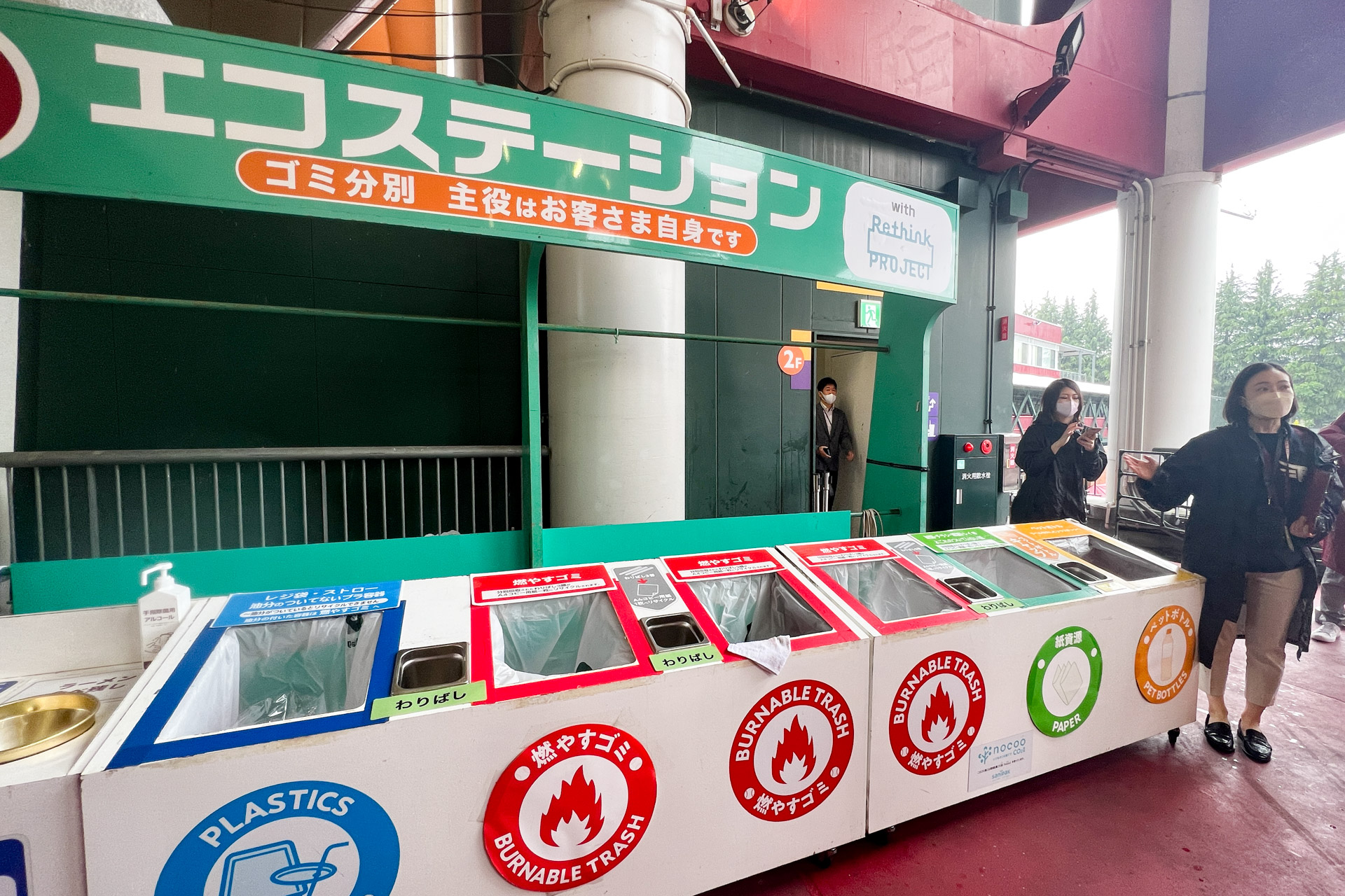 楽天生命パーク宮城内に、エコステーションと題したごみ分別所を設置。現在では複数の球団が同様のものを設置していますが、始めた当初はプロ野球界で初の試みだったとのこと。楽しくゴミを分別しながら、CO2削減に貢献できます。