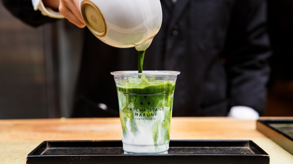 築地のお茶専門店。目の前で注がれる抹茶ラテをマイタンブラーに潜ませれば、いつもよりちょっと贅沢な一日に!