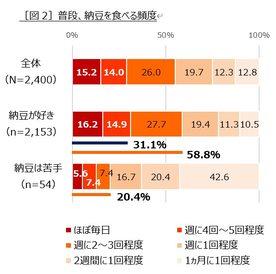 さらに、納豆を食べる頻度については「ほぼ毎日」(16.2%)、「週に4~5回程度」(14.9%)で、約3割が「週に4回以上」納豆を食べていることも分かっています。