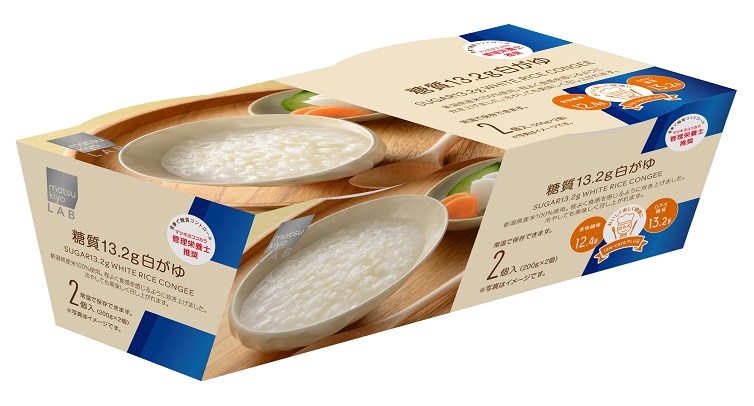 まず、「matsukiyo LAB 糖質 13.2グラム 白がゆ」は、新潟県産米を100%使用しつつも、糖質は13.2gに抑制。さらに、食物繊維を10gも含んだうれしい商品です。