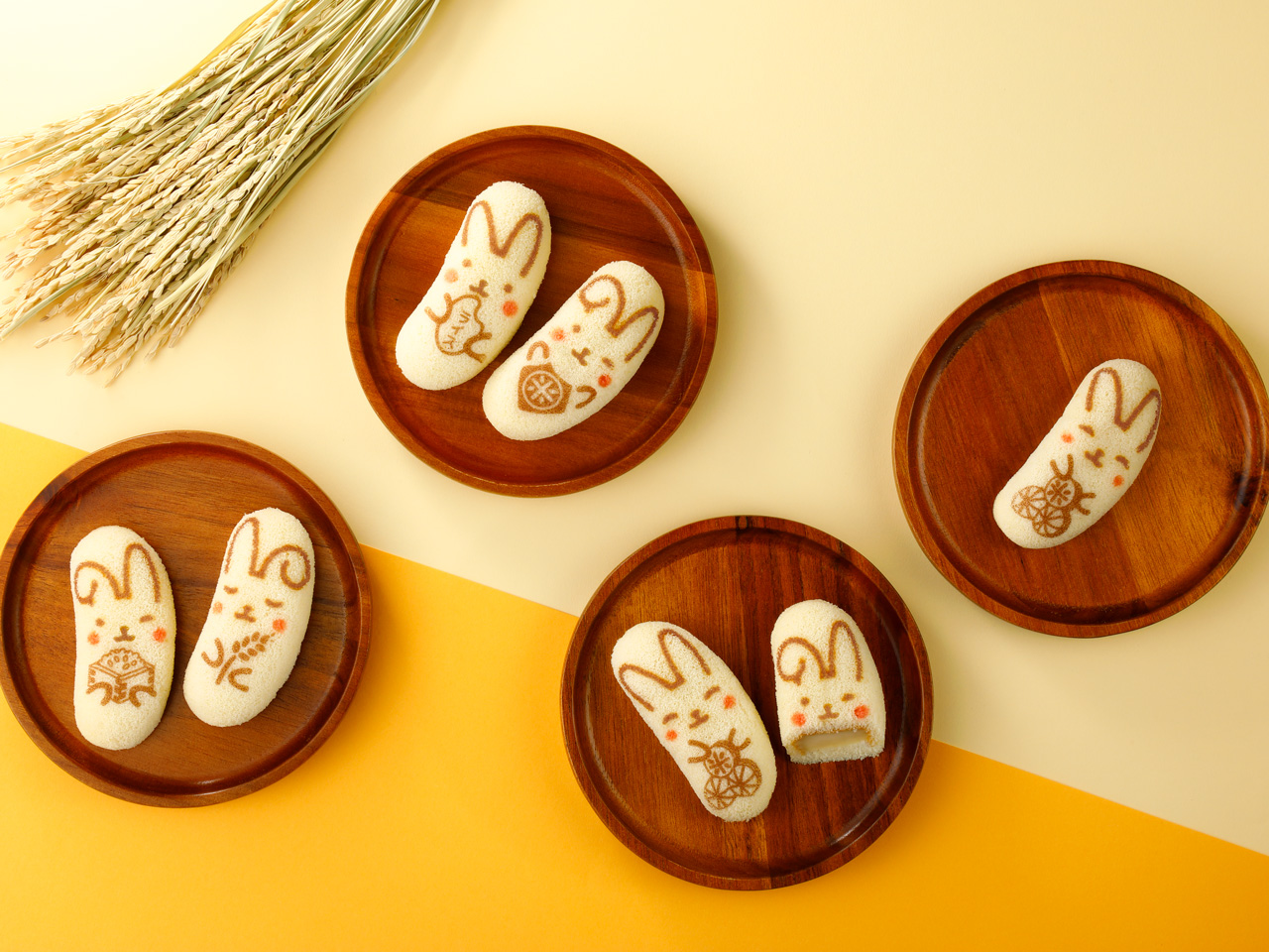 2023年はうさぎ年。スポンジケーキに描かれた“もちふわうさぎ”