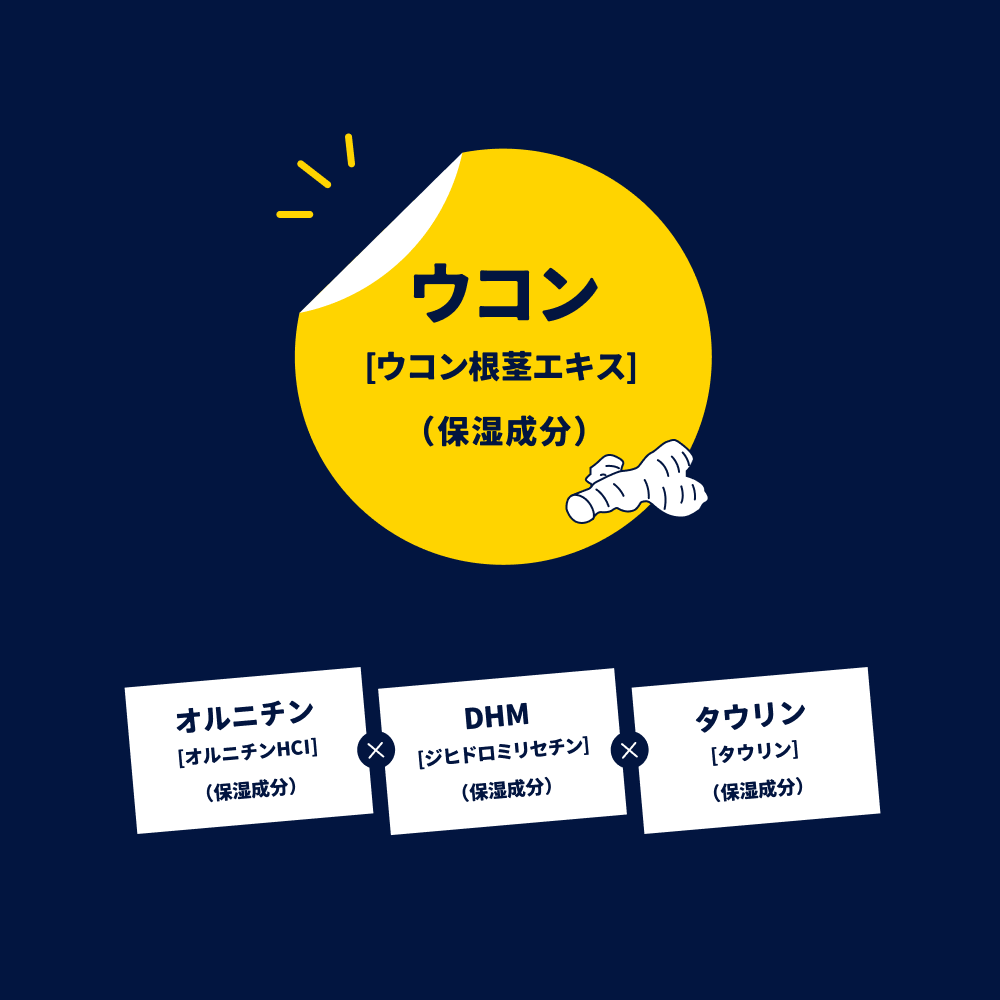 有用成分としては、ウコン、オルニチン、タウリンに加え、近年欧米にて注目されているDHM、オオアザミや、ビタミンC誘導体、グルタチオン、システインなどが配合。