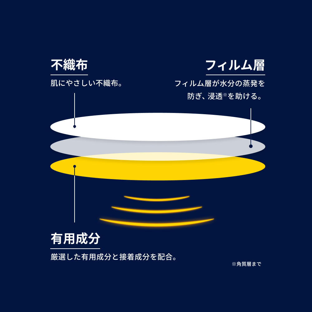 仕組みはパッチに配合された成分が濃度勾配により、肌表面から角質層へと浸透。さらに、密封効果によって肌の水分が蒸発せず留まることで、角質層内に成分が拡散しやすくなるそうです。
