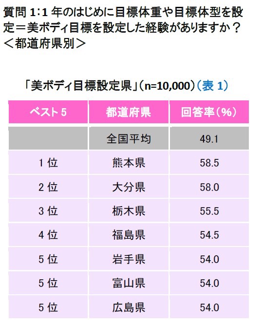 ちなみに、目標設定やその達成率にも「地域性」があるようです。 1年のはじめに目標設定している人がもっとも多かったのは「熊本県」(58.5%)、もっとも少なかったのは「長野県」(42.5%)となりました。