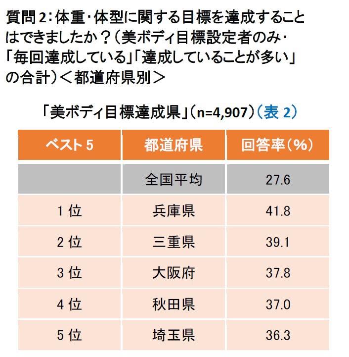 もっともダイエット達成率が高い県は? 目標設定率や痩せたい部分なども調査 (2/3)