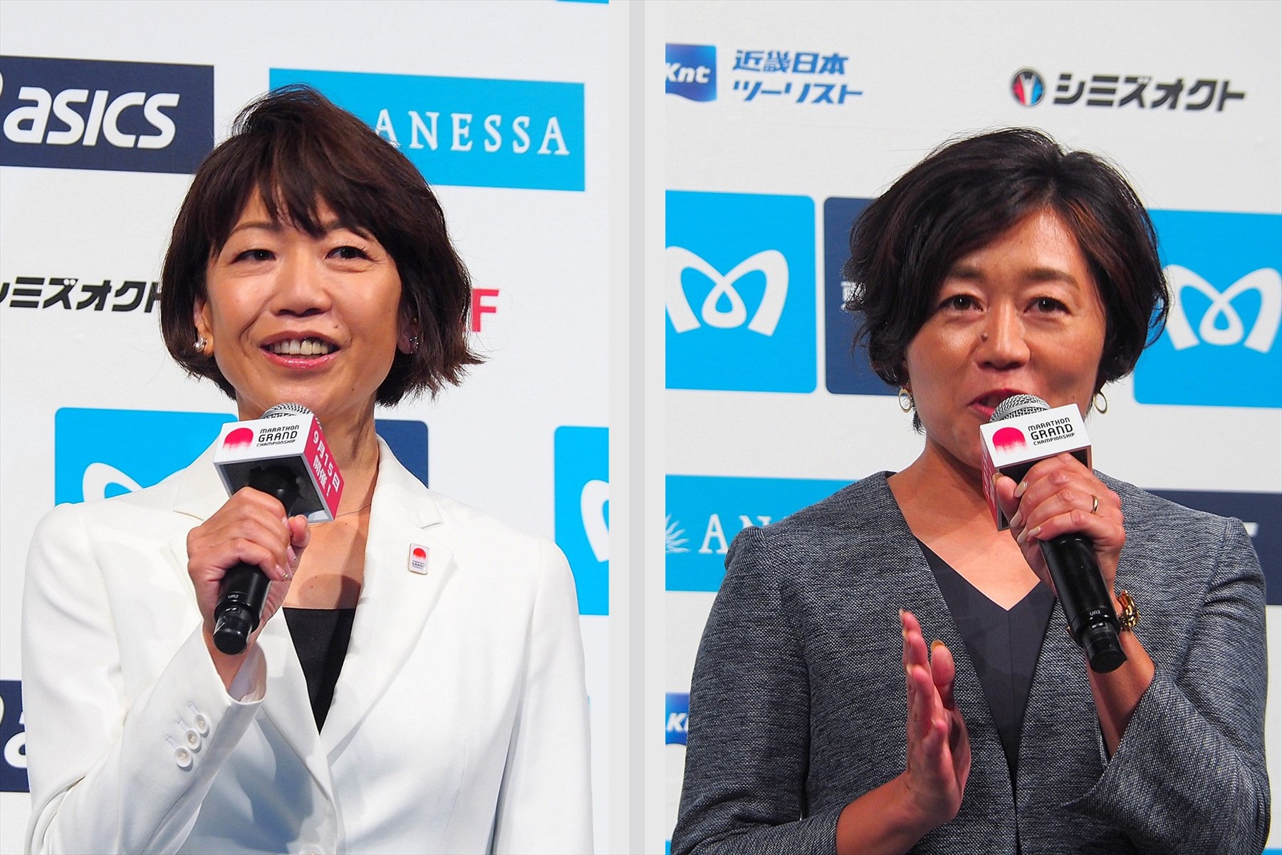 ▲テレビでも生中継されるMGC。TBSのキャスターを高橋尚子さん(左)が、NHKの解説を野口みずきさん(右)が務めます
