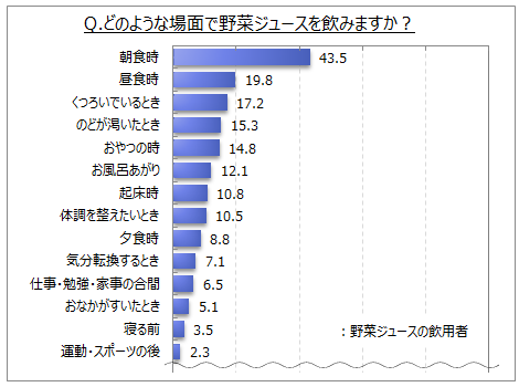 ちなみに、野菜ジュースは一体、いつ、どんなシーンで飲まれているのでしょうか?