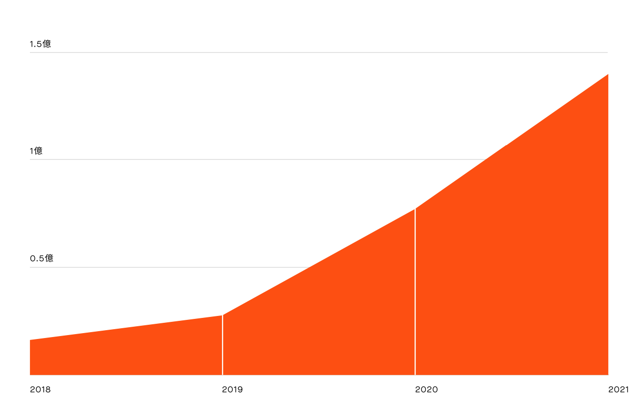 世界が新型コロナウイルスに揺れた2020〜2021年。同社によれば、パンデミック初期に始まった運動ブームは、2021年も継続していると言います。2020年はアクティビティ(活動)数が急増した1年でしたが、今年はさらに年間で38%もアクティビティが増加。12か月間でアップロード件数は18億件にのぼります。